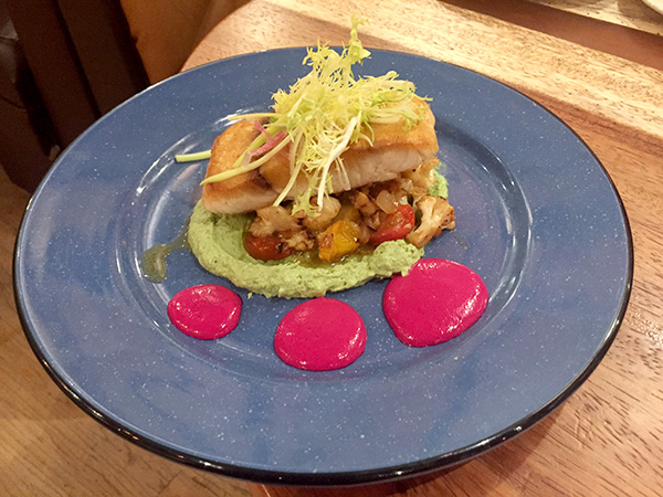 From jars and small bites to main dishes and sides, we ordered five items between the two of us. Only one disappointed — the California sea bass, an entree featuring cauliflower, haricot vert mousse and beet yogurt. Listed also in the set is raisin vinaigrette, which went undetected. It was desperately needed to hydrate the well-done, under-seasoned fish. Overall, the dish was pretty on the eyes but flat on the taste buds.