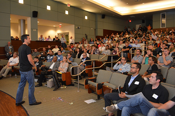 Rasto Ivanic, CEO of incubator company GroupSolver, gives a presentation at EvoNexus’ Demo Day 2015 in March (Courtesy EvoNexus)