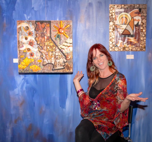 “I call it rare painting,” said Clarkston of her two-dimensional, unorthodox style incorporating rehabilitated plastic. “I do a lot of tiki and mid-century themes, kitschy things with a ’60s or ’70s vibe. All have mosaics.”