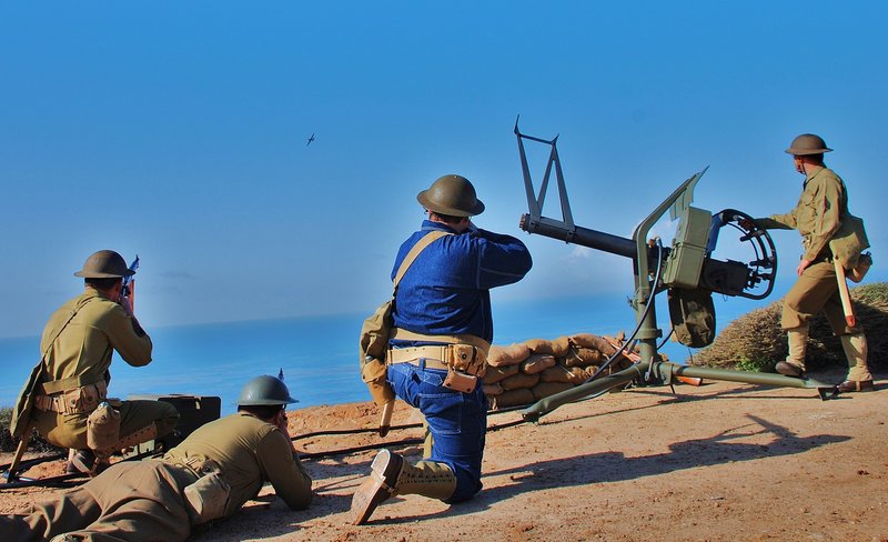 No doubt about it. Cabrillo National Monument is more than just a lighthouse. The original lighthouse was declared a landmark in 1913, and that’s what attracts many visitors today. But last weekend, visitors had a unique opportunity to learn about the historic military significance of the monument during the event billed as “Air Raid Pearl Harbor: Fort Rosecrans Goes to War.” Organizers said the event was the only Pearl Harbor re-enactment on the West Coast, and the first-ever held at Cabrillo. Members of the California Historic Group and other re-enactors represented men and women of the U.S. Army 19th Coast Artillery and set up camp displays throughout the park, complete with tents, vehicles and even a bicycle of the period. Observation bunkers, the army radio station and other historic structures were open to view. The event also included a hike to a bunker that contains a 60-inch diameter searchlight, which scanned the skies for enemy aircraft. The bunker, located on the monument’s Bayside Trail, is often missed by hikers and joggers and is normally not open to the public. Perhaps the highlight of the event was a re-enactment of the air raid itself, which took place 70 years ago this month.