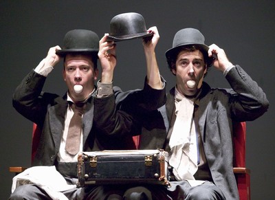 Playing around is serious business, especially when the players are new millennium vaudeville clowns like Geoff Sobelle and Trey Lyford. Their gently comic, existentially poignant show, titled “all wear bowlers,” continues through Sept. 3 in the Sheila and Hughes Potiker Theatre at La Jolla Playhouse (www.lajollaplayhouse.com or [858] 550-1010).