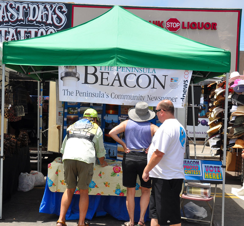 During your travels up and down the street fair, make it a point to swing by the Peninsula Beacon booth on Newport Avenue and vote for your favorite photo in the Beacon’s annual amateur photo contest! Also, grab a copy of our 2013-14 Ocean Beach/Point Loma Visitors’ Guide that gives you complete listings of community activities and attractions throughout the year.