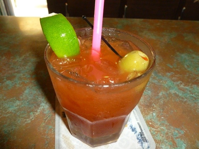 The Bloody Marys are served in short cocktail glasses with olives and limes, but beer and well drinks are significantly taller and more potent.