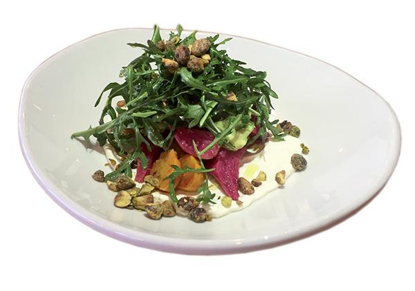 My companion raved about the organic beet salad he ordered — and rightfully so. The tenderly cooked beets (red and yellow) were crowned with fresh arugula and set atop lemon Greek yogurt and candied pistachios. As far as ubiquitous beet salads go, this offered a refreshing dose of novelty.