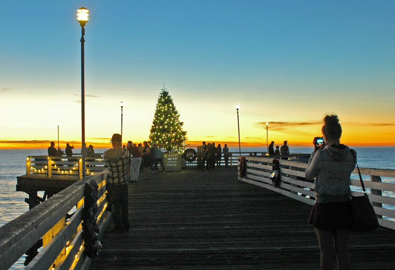 Be sure to stick around after the photo shoot, because Santa will help turn on the holiday lights along the pier and tree after sunset.
