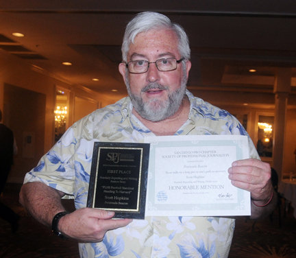 The Society of Professional Journalists, San Diego chapter, held its annual banquet at the Kona Kai Club on Shelter Island, with Scott Hopkins receiving a first place and an honorable mention in judging of work submitted by all San Diego area newspapers, radio and television stations, Internet sites and blogs.