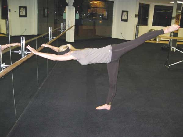“We start at the ballet barre with a warmup, where we work in true traditional dance positions,” said Gallacher while stretching at the barre. The studio’s program, she said, is “continual fat-burning motion — always moving, always stretching.”