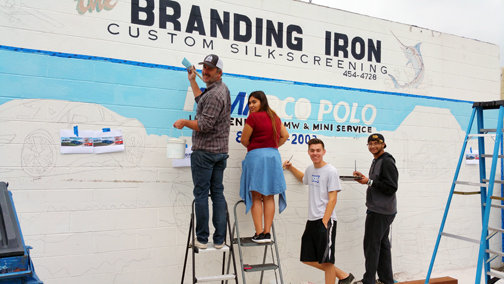 An art instructor from High Tech High and a few of his students have enhanced the new addition to Marco Polo Independent BMW & Mini Service in La Jolla.