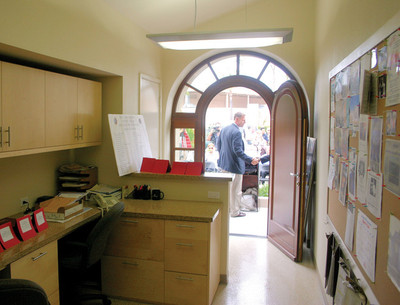 City Council President and District 1 Councilman Scott Peters welcomes attendees to the July 20 celebration of renovated Fire Station 13, 809 Nautilus St., as seen through the inside entrance.