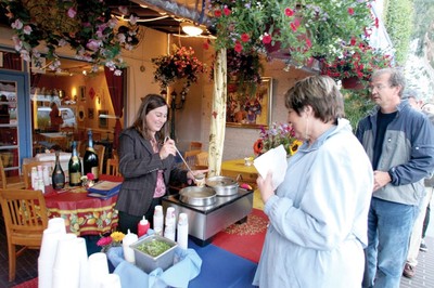 Participants in the Oct. 16 “Taste of La Jolla” get ready for portabello mushroom soup and french fries at My Place, 7777 Girard Ave., one of 25 restaurants offering samples. The seventh annual restaurant walk raised funds to benefit the Foundation of La Jolla High School, which makes up some of the shortfalls in the school’s budget due to district cutbacks.