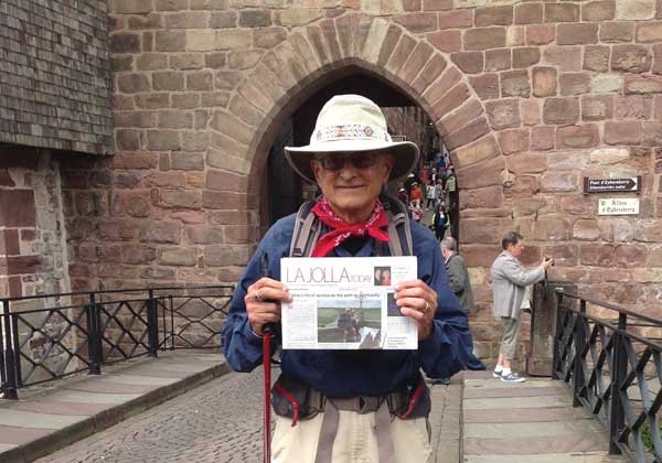 A life’s journey Remember Bonnie and Krishna Arora, the La Jolla Golden Triangle Rotarians who embarked on the final leg of their 1,000-mile pilgrimage in southern France and Spain (“Finding a life of service on the path to spirituality,” April 11, Page 1)? They sent an update from their epic journey. Left, Krishna stands on the pilgrim bridge in St. Jean Pied de Port, France, as they prepare to begin a 26-kilometer trek over the Pyrenees into Spain. Bonnie wrote, “The high pass that we wanted to take (called Route Napoleon) had been closed for a couple of days because of bad weather, so we were worried that we would have to take the road, but the pass reopened the day we arrived. As we walked, it got cold and began to rain and we had to trek through snow left over from the storm. It was raining when we arrived in Roncesvalles, but we were able to get our pilgrim passports stamped with our final stamp and finally complete this journey of 1,000 miles that started a decade ago.”