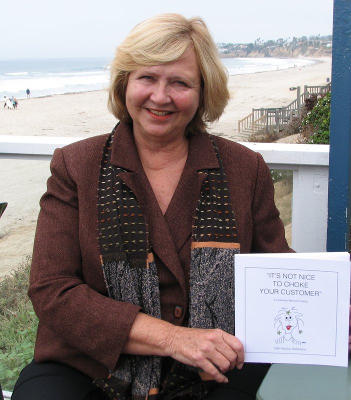 As the prime holiday shopping and entertaining season approaches, most would agree it’s increasingly important for businesses and employees to put their best foot forward to ensure customers have the best possible experience, attracting positive “buzz” and return visits. Yet that’s often easier said than done, as the challenging economy places additional stresses on both consumers and the staff that deals directly with the public. Addressing these pesky issues, local author, artist and customer-relations trainer Cath Kachur DeStefano comes to the rescue with her recently published “It’s Not Nice to Choke Your Customer” — part of her Human TuneUp Tool Kit. In it, she combines experience gleaned through front-line customer service jobs — including a stint waiting tables at Judy Forman’s Big Kitchen when Whoopi Goldberg was a dishwasher — with knowledge gained as a staff development and human potential trainer. DeStefano possesses the rare ability to distill an idea’s essence into its simplest, most succinct form. She conveys her points using whimsical doodles, while keeping her tone light and playful, despite the serious content. Among this reader’s favorite clear-eyed gems: “Simple. No customers. No paydays,” and “Satisfied customers are the only ad we really believe,” a point confirmed by the popularity of rating websites like Yelp.com. “My style is to get the essence out in a few words. I see it simple. I write to people’s current attention span,” DeStefano said. With her book, DeStefano packages a doodle-illustrated flip-book, filled with key customer-service points, and a set of 10 employee appreciation cards. She markets the tool kit both as a set and as individual components through her Human TuneUp website. DeStefano, who lives along the Pacific Beach/La Jolla border, learned about customer service the hard way. She worked her way through college as a postal worker, aluminum factory punch-press operator, waitress and, after her move to San Diego, as a hotel switchboard operator. “I remember how I was treated,” DeStefano said. “I was treated as if I was ‘less than.’ I’ve never forgotten.” The principles of effective customer relations are simple, but not necessarily easy to implement, she said, especially in a fast-paced, short-staffed environment. “People just want to be respected. ‘Treat me like I matter,’ that is the essence of customer service,” she said. Dealing with the public is wearing, DeStefano points out, and often requires an attitude adjustment to cope with difficult or angry customers. She designed her book — and particularly her flip-book — as a refresher. It is filled with tips and tools to get through the day while maintaining sanity and good humor. She geared it to the hospitality, retail and other high-public-contact industries. Newly graduated with both a teaching certificate and degree in political science and international relations, DeStefano left her native Michigan in 1976 and headed for the sun of San Diego. She found professional work as a caseworker in the San Diego County Welfare Department, later moving into a staff-development position, where she discovered her passion for teaching and training. After two years, she quit her job and founded her own training business, originally called Ideas in Action. She connected with a national seminar company and conducted training seminars throughout the country and around the world. Nearly seven years ago, tired of constant travel, she scaled back her business and became executive director of the Diplomacy Council of San Diego, which partners with the U.S. Department of State in arranging people-to-people international programs. Recently, San Diego Magazine selected her as one of its “Women Who Move the City.” To purchase “It’s Not Nice to Choke Your Customer,” or engage Cath DeStefano as a speaker, visit www.humantuneup.com/”www.HumanTuneup.com.