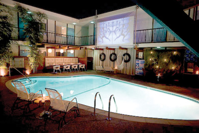 Full-length feature movies are offered poolside on a 10-foot-by- 13-foot screen as part of a new look and feel not only to entice out-of-towners but locals, according to hotel officials.