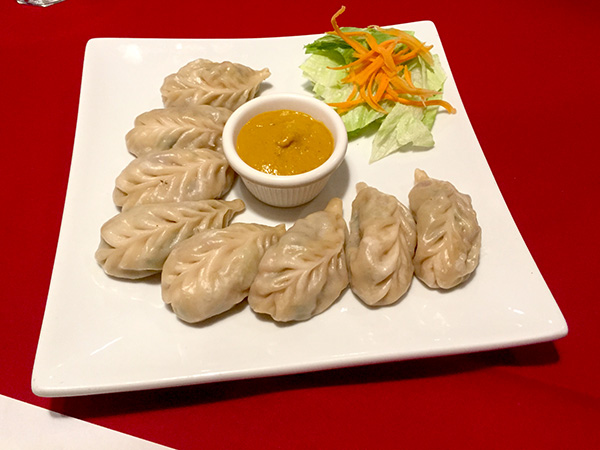 From the category of Himalayan specialties, vegetable momo are like a hybrid of Chinese and Eastern European dumplings. Their pierogi-like casings contain minced cabbage, spinach, cashew nuts, onions and cilantro. Served eight to an order with a thick, yellow dipping sauce containing turmeric and “up to 20 other spices,” according to Pudasaini, it’s a main course that might be better shared as an appetizer among three or four people.