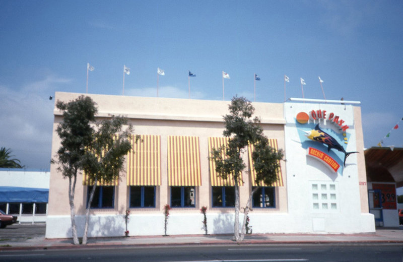 Remember Que Pasa Rockin’ Cantina at 4287 Mission Blvd.? Me neither. But I recall earlier venues on this site — Swan Song, Old Pacific Beach Cafe and Billiard Den. I took this photo May 26, 1994. Still lost? That’s Nick’s at the Beach on the left. It might have been Giulio’s when this shot was taken. I think they dozed the entire structure and rebuilt. RipCurl is there now. You can view Remember When? photos enlarged, and in color, on the Pacific Beach Historical Society web page.