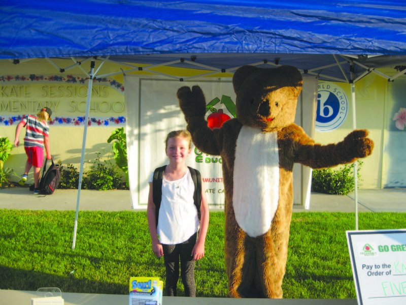“Recycling is how we generate revenue for the Go Green program,” said Whitney, who changed into his alter ego, the Go Green Koala, to pose with Kate Sessions’ new principal, Margaret Joseph, who accepted the nonprofit’s first recycling payout on behalf of her school Sept. 3.