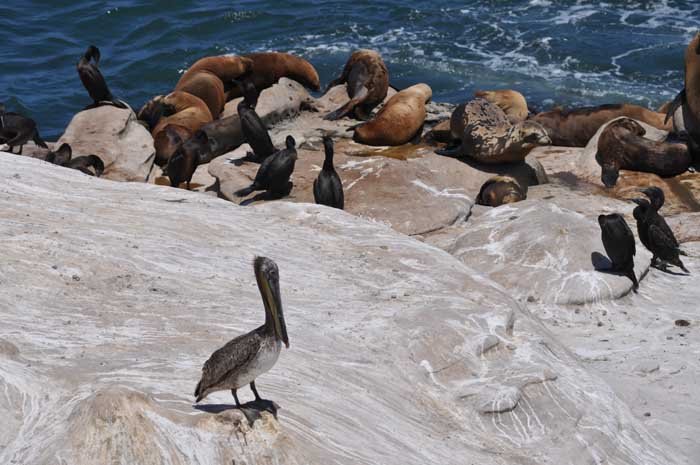 This is a great day in the history of La Jolla, said Mayor Bob Filner at a press conference at La Jolla Cove on May 28. “The end of the poop has arrived.” Blue Eagle Cleaning, an all-natural cleaning solutions company, tested a microbial cleaner on pilot plots north of the primary cormorant mess at La Jolla Cove on May 28. If the test treatment proves to be effective at eliminating the bird droppings and odor that emanates from them without affecting the water or sealife, a full-scale treatment of the entire affected bluff will begin June 10. The cleaning solution is an all-natural bacteria blend that effectively eats away at the waste material. According to biological consultant Keith Merkel of Merkel & Associates, the treatment is safe for the environment and effective at quelling the odor almost immediately after its first treatment. “It’s a blend of bacilli bacteria, and they go after the nutrients and the waste material itself. Once the bacteria run out of food, they will ultimately die off or dry out,” said Merkel. “This is something that has been used multiple times for cleaning and has also been used in the food industry for dissolving waste materials.” The arduous permitting process to clean the coastal bluffs was initially quoted to take two years to complete before a cleanup method could be employed. Furthermore, strict environmental and marine mammal protection guidelines mandated that the method of cleanup not disturb the air, water, bluffs, birds or mammals in the area, limiting options in the sensitive habitat. Local residents and business owners, however, could not stand the stench that affected their local economy that long, and groups like La Jolla Parks & Beaches and the La Jolla Village Merchants Association worked with City Council President Pro Tem Sherri Lightner and Mayor Filner in expediting the cleanup process. “While the powerful stench may seem like a punchline to many, I can tell you it was nothing to laugh about for the residents and business owners in La Jolla,” said Lightner. “The ongoing odor issues were impacting our quality of life and hurting our local economy, while the tangle of state and federal regulations created a seemingly unsolvable knot of bureaucratic red tape.” Filner declared the area a public health and safety hazard, which helped clear the path to obtaining permits for the cleanup quickly. After exploring various avenues to determine the best environmentally sensitive solution — from falconers, tarps, spikes and a vacuum technique — city agencies and constructive locals found the most appropriate solution in Blue Eagle’s microbial treatment. The price tag for the cleanup, in the order of $50,000 for the initial cleanup and up to $100,000 expected per year for additional treatments, is funded through the city’s Park and Recreation Department. “We think we have a process that works. We’ve done it right. We’ve kept in line with the environmental protections that are guaranteed, but we have to also protect the health and welfare of citizens here in La Jolla,” said Filner. “It just has to be done. It’s just unacceptable for the community to have to deal with this.”