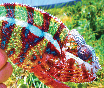Panther chameleons are small, tree-dwelling reptiles that are only found in one place in the world, Madagascar. They are best known for being masters of camouflage that can change their brilliant colors in the flash of an eye. They have long, sticky tongues to catch their prey, binocular eyes that can see in two different directions at the same time, and prehensile monkey-like tails that they use for climbing and hanging from vines. With their many unique features and exotic color patterns, it’s no wonder they are considered one of the most beautiful reptiles on the planet. Panther chameleons make great pets, too, and are perfect for someone who wants to take that step up into exotic reptiles but doesn’t want to spend a small fortune. They are relatively easy to care for and only require a screened cage about the size as a 20-gallon aquarium. They are guaranteed to be the talk of any party and will be a unique focal point of a living room where everyone will enjoy their amazing colors and peaceful movements. They also can help you relax during your busy days at the office and are great for families with children, too. Chameleons are fun to feed and like to snatch up crickets, flies, roaches, giant green horned worms and other insects with their long, sticky tongues. Their food sources are inexpensive and easy to get at your local pet store or they can be shipped right to your doorstep. Being arboreal, chameleons like to drink water droplets that drip down onto the leaves of a plant below, simulating raindrops hitting the leaves of trees in the rain forest. They require a special, inexpensive florescent light that simulates the sun’s UV rays and they enjoy soaking up the warm San Diego sunshine, too! We hope you enjoy caring for panther chameleons as much as we do. We also are happy to help with any questions you may have about purchasing or caring for the chameleon you may already have. We look forward to writing future articles about these amazing little guys and to teaching you some of the secrets we’ve learned over the years for caring for and breeding them, too! For more information, call (619)-822-0093 or visit their Website at www.exoticpanthers.com.
