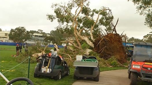 One of Torrey Pines Golf Course’s most iconic trees, seeded at the 15th hole, collapsed during a fierce winter storm Jan. 31. The winds, which reached gusts of up to 60 miles an hour, blew down the massive eucalyptus after the golf course had been closed for the day. Farmers Insurance Open play was suspended Jan. 31 in the face of the storm, which leveled dozens of trees and power poles and tore away rooftops across California. Several Torrey pines were damaged as well. The Torrey pine, an endangered species, grows up to 56 feet and only on the Torrey Pines State Natural Reserve, a bluff overlooking the Pacific Ocean, and one of the Channel Islands.