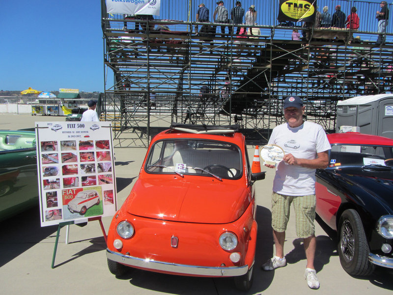 Ocean Beach resident Andy Renwick of Lotus Street recently won the first-place prize for the best European Italian car at the Coronado Speed Week Festival. Renwick refurbished the car by himself in his garage at home. Courtesy photo