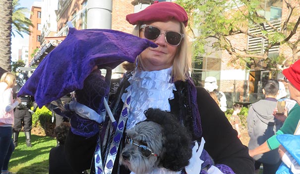 One of the standouts was Sir Ruffles Von Vicious (handler Jan Savage). Ruffles was dressed as Prince this year and they took both Best Pet Costume and Best Costumed Duo.