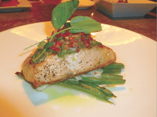 We instead dove into a hefty filet of grilled Scottish salmon dressed in basil pesto and pico de gallo. The chef applies the toppings judiciously, ensuring that the distinct, creamy flavor of the salmon isn’t lost to the garlic and herbs that go into the garnishments.