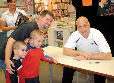 He signed his new book, “Get In the Game: 8 Elements of Perseverance That Make the Difference,” and his first children’s book, “The Longest Season.”