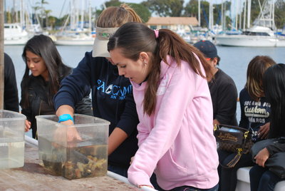 Mission Bay High School (MBHS), partnering with the Scripps Institution of Oceanography (SIO), continues to make new inroads into one of the nation’s leading marine-sciences programs at the high school level. MBHS marine sciences program, originally launched as part of the magnet program at the high school, became officially linked with SIO after the award of a GK-12 grant two years ago that partnered high school staff, researchers and students to bring up-to-date science and technology into the classroom. Steve Walters, a science teacher at MBHS, said it would be hard to overestimate the impact of the program on the students, the department and even on his own teaching. A big part of the enrichment comes from the science instructor’s direct immersion into the research programs taking place at SIO, which are conducted by researchers and graduate students. A graduate student is assigned to partner with teachers like Walters, so that Walters and the classroom have a direct point of contact and access to ongoing research. “We see how we can bring research into the classroom,” Walters said. “We bring animals in from the experimental lab. I can send in real data from the labs at Scripps to the classroom. Being paired with a Ph.D. candidate helps this process work smoothly.” UCSD Ph.D. candidate Alison M. Cawood, who works in the Integrative Oceanography Division, has been working with Walters and his students for the past two years. Cawood comes into the classroom and works with the students during specific labs. “It is key to see these graduate students come in and talk to the kids. They serve as role models to the students,” Walters said. The graduate student involvement becomes more intense once the instructor, Walters in this case, is involved in research or training at SIO. One major component of the training occurs during a week-long, student-led excursion on the SIO research vessel Melville. Walters is able to send back real-time data to the classroom from the research vessel as Cawood oversees the class with the support of a substitute teacher. Walters sees the connectivity with the researchers, the access to up-to-date science and exposure for the students as critical in engaging them. He and Cawood produce the curriculum for the labs they teach based on the ongoing research at SIO. These labs are available to other educators online and they are specifically written so that other instructors can use the same material in their own classes. Walters points out that the hands-on experience and the access to facilities and researchers both at SIO and UCSD generates interest with the students and gets them to think more seriously about their education. He feels that having a graduate student around only strengthens that interest and gives his own students direction. “After doing this for 26 years, I look forward to coming to school every day and teaching,” Walters said. “The students are engaged, and the gap between high school students and a future at a UC school is that much lower.” For more information on student-led research excursion on the Melville, visit calechoes.ucsd.edu/.