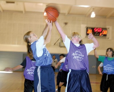 Brady Owens (left) goes up for a shot in a Standley Park Recreation Center’s Association for Athletics Youth Basketball League opening season game Jan. 6 at Standley Park Recreation Center, 3585 Governor Drive.