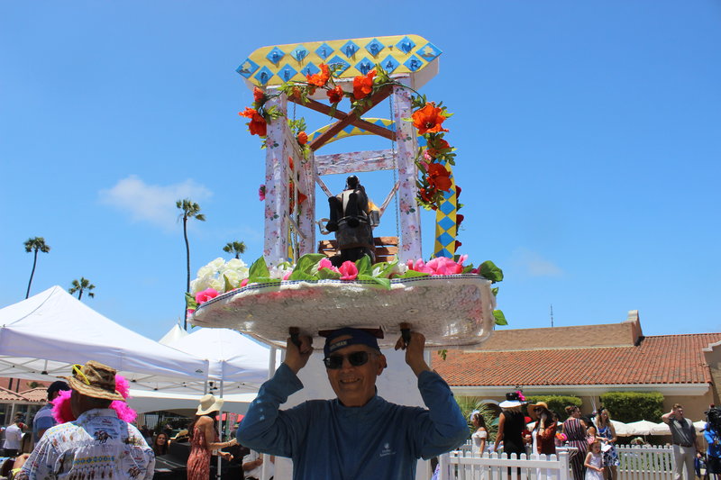A retired engineer and on-again, off-again participant of the Del Mar Opening Day Hat Contest, Polacek donned a hat for the contest’s 25th anniversary that was at least two feet tall, weighed a dozen pounds and required two hand straps and a?cushion for the top of his head.?