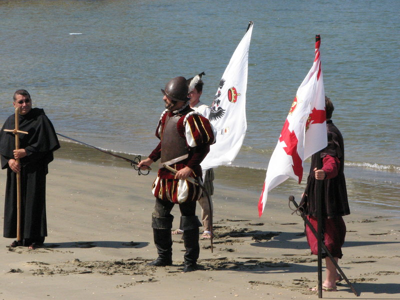 The highlight of the annual historic festival, of course, is the re-enactment of Cabrillo’s landing on the shores of San Diego Bay with actors in period garb representing Cabrillo, his soldiers and priests landing and claiming the land. A Portuguese navigator sailing under the flag of Spain, Cabrillo discovered San Diego Bay while searching for the Strait of Anian, a mythical all-water route across North America. Shortly after he left what would become San Diego, Cabrillo died of an infection on the islands outside Santa Barbara.