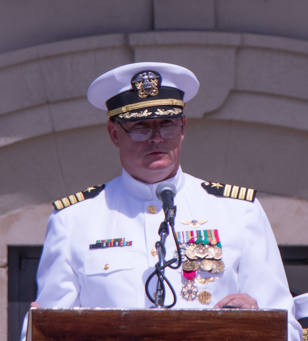 Speaking at his retirement event were Capt. John Denton, Rear Adm. Michael Zarkowski, Vice Adm. Mike Shoemaker, Capt. John Denton and Lt. Tommie Crawford.