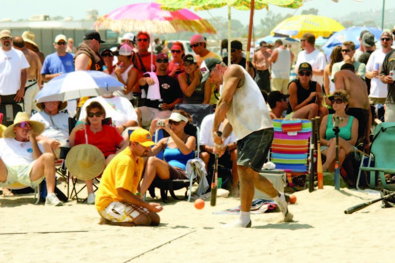 It’s a simple game but it carries a lot of clout. Just hit a “served-up” softball 55 feet, beyond the reach of opposing fielders for three or four innings, and your team advances into a double-elimination, two-weekend tournament known as the Over-the-Line (OTL) World Championships. It’s the Old Mission Beach Athletic Club’s (OMBAC) entertaining, 59th annual offering that publicist Brad Pagano explains will attract more than 60,000 frolicking sunbathers to the sands of Fiesta Island on July 14-15 and again on July 21-22. It’s the “happening thing” during the San Diego summer, with entertainment, food, fun — and often a few unexpected twists. Reigning over the festivities again will be a young lady selected to be the traditional Miss Emerson. Since it’s modest beginnings in the 1950s at South Mission Beach, today, 1,300 men and women swing away on 50 courts from 7:30 a.m. to sundown initially to determine 10 class winners. The three-person teams, ranging from 18 to 70 in age, will come from as far away as Japan, Germany and Iceland. No base-running is needed and nary an umpire is in sight. The primary objective is to hit the ball “over the line” without it being caught by the opposing team. A third hit in an inning scores one run and each subsequent hit scores another. A ball hit past all of the opposing fielders is a home run. Teams pitch to their own members, typically from a crouched position next to the batter. By tradition, team names are creative and good-natured, but can sometimes be quite colorful — even obscene — and often play off current events. The names are usually not publishable. Pagano agrees that during actual play, some finesse is important. But he said practice and participation in traveling tournaments have honed the game for many players and prepared them for the endurance run. They have even formed a players association. “They play all year, maybe at Crown Point, Mariners’ Point or Fiesta Island,” Pagano aid. “In the OTL Tournament, teams might play five to seven games the first weekend and eight more the second week to reach the championships.” For the long haul, teammates will rotate as pitcher, batter and retriever. Substitutions are permitted. “The better teams will have members who have played many years … of baseball, softball, maybe golf,” he said. “Everyone self-referees their own games. Pretty much like it’s always been.” OMBAC will provide complimentary bus transportation to and from Fiesta Island during the first three days of OTL. Shuttles will run between Fiesta Island and the west end of the Bonita Cove parking lot across from the Bahia Hotel, and between Fiesta Island and the Linda Vista trolley station’s Friars Road parking lot. In addition, a shuttle will circle the island starting at 10 a.m., with parking nearby, across Sea World Drive. Roadside parking fills the island early, and vehicular traffic is usually closed off by 10 a.m. OMBAC, a nonprofit organization, focuses on youth athletics and local charities. Last year, the club’s fundraising and donations included UCSD Cancer Research, Junior OTL Scholarships, Wounded Warrior Foundation, Huntington’s disease groups, Bikes for Tykes, Cancer Walk, Marine Family Christmas Fund, Pacific Beach Youth Group, San Diego St. Patrick’s Day Parade, San Diego Blood Bank, OMBAC rugby, OMBAC water polo, and other youth athletic activities. For more information, visit www.ombac.org/homepage/index.html.