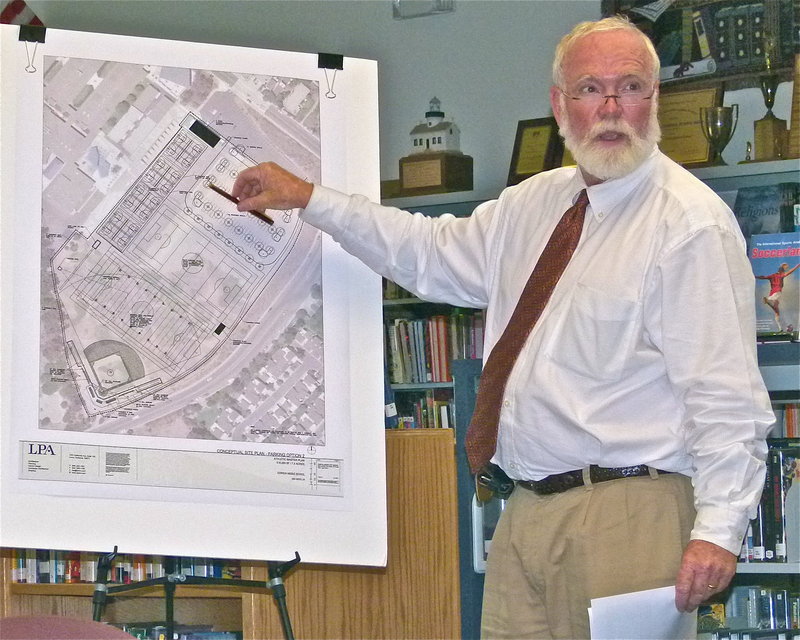 A dozen community members, including San Diego Unified School District (SDUSD) board member Scott Barnett, heard a progress update Sept. 14 on the proposed transformation of the underutilized field space at Correia Middle School into a multi-field community athletic complex. The project, which would provide practice and game fields to schools and community groups on the Peninsula, has been dubbed the “athletic master plan.” Still in the planning stages, three different proposals were presented for consideration by audience members, including representatives of local schools, sports programs and the nearby Peninsula YMCA. The group was given a cost range, depending on options, that range from $6.9 million to $9 million. Because this project is not a part of the SDUSD’s new, massive Proposition S school upgrade bond, the project would have to rely on other funding sources.  Jim Watts, director of facilities planning and construction for SDUSD, showed detailed site plans prepared by LPA, Inc., a company that has been assisting the district with the project. Each plan touted differing field alignments and a varying number of parking spaces. As a result of previous meetings and through online opinion gathering, proponents found the community’s most highly desired features at a future Correia complex were multiple-use field space for soccer, football, lacrosse and field hockey events, with seating for spectators, continued use of an existing baseball field at the site and night lighting. SDUSD officials would add a two-story tutoring center on the Valeta Street side of the property that would have team rooms and permanent restroom facilities on the ground floor with a computer-equipped teaching space on the second floor. The structure would be about 4,200 square feet. Watts said the higher $9 million price tag would include synthetic turf on all fields — an option the SDUSD prefers and one seemingly shared by those in attendance at the Sept.14 meeting. The Correia site is not scheduled for Prop. S improvements until 2017 and the 10 Point Loma cluster schools (Point Loma High, Correia and Dana Middle seven elementary schools) are scheduled for another $52 million in improvements that have not yet been started, Watts said. One funding option, Watts said, would be for each of the 10 cluster schools to give a percentage of their future Proposition S funds to the athletic master plan. This option would, however, be in lieu of some planned improvements at each campus. Barnett, a project advocate who represents the district’s beach-area schools, was quick to point out that no schools will be forced to pay for the athletic master plan project. He added that the district is in preliminary discussions about closing a number of school campuses in San Diego as a cost-saving measure. If a school in the Point Loma cluster were to close, Barnett said the school board would mandate that site’s Prop. S funding remain within the cluster. Meeting participants urged the district to consider a large retaining wall along the Famosa Boulevard side of the property that would free up significant space for additional parking. Also, it was suggested the city could assist by adding more badly needed parking spaces at adjacent Cleator Park. Donations from youth sports programs and gifts from local benefactors were also suggested. “We want a facility that is safe and well-received by the community,” Barnett said. “We want to be good neighbors.” Watts said district officials will further revise the plans to include feedback from this latest meeting as the project moves forward.