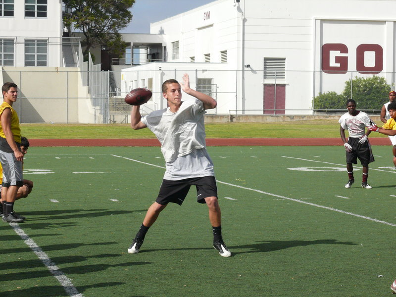 Mike Hastings and his associates are in the process of a major remodel job in Point Loma. But Hastings is not an architect and doesn’t own a construction company. He is Point Loma High School’s (PLHS) successful head football coach. As he must do every summer, Hastings and his legion of talented assistants are laying the foundation for what they hope will be another Western League championship team in the fall. This month’s graduation took its usual toll of skilled players who had matured through the meticulous planning and coaching that has carried the Pointers to three CIF championship matches at Qualcomm Stadium in the last five years — an accomplishment only dreamed about by most coaches in the county. And that is no accident. Hastings works year-round to teach leadership skills and help his players become the quality young men he envisions. He and his hard-working group of assistants have developed a vision of excellence and effective ways to communicate it to more than 100 teens who turn out annually in hopes of wearing the maroon and gold into battle at the varsity, junior varsity and freshman levels. The expectations of PLHS football players are clear. They begin with many hours of goal-driven weight lifting and physical preparation while learning the team’s offense and defense. But Hastings also demands that his players be good students in the classroom, helpful sons at home and that they serve as positive role models on campus and in the community. Many of his charges had that opportunity last week as they worked with local youth in a “Little Pointer Football Camp,” a skills workshop for kids who dream of someday playing Pointer football. And this year, the Pointers are hosting a multi-team “passing league,” in which other high schools square off in seven-on-seven competition — without pads — to work on their passing games and defense. On Tuesdays and Thursdays from June 16 through July 14, teams meet on Bennie Edens Field. Only quarterbacks, backs and receivers play offense, while linebackers and defensive backs make up the defense. On a recent Tuesday, the Pointers sent their units against Mission Bay, La Costa Canyon and Horizon Christian high schools. The field was divided in half, allowing all four schools to play at once. Games were 40 running minutes against each opponent, split between offense and defense. There are no referees and no score is kept, but play is intense and school pride evident. Action begins at 4:30 p.m. and runs until 6:30. The public can observe from the stands. “We schedule a variety of schools, big and small,” Hastings said. “We have a good venue and a lot of East County teams want to get out of the heat and come here.” The passing league is a win-win for both coaches and players. “We can work on our timing and running routes properly,” Hastings said. “The quarterbacks get a lot of repetitions and defensively we can work on some new schemes from a coverage standpoint.” Coaches from the four schools scurried from player to player, praising some while reinforcing assignments and pointing out errors to others. “It’s kind of fun,” Hastings said. “We get to experiment and tinker around. When the pads go on (in August) we get to play real football again.” While school was still in session, players attended spring practice, lasting 2.5 hours every day after classes. This series of drills ended with an annual “Maroon & Gold” game on June 7 and a pizza meal provided by the team’s boosters. Exactly one week later, on the first day of summer vacation, Pointer players and coaches  returned to Bennie Edens Field for five weeks of “TAC” (training and conditioning). Every drill and exercise is carefully designed to advance the team’s readiness for fall battles. Then, on July 15, varsity players depart by bus for a weekend retreat in Big Bear, where Hastings oversees activities that strengthen bonds between teammates that could prove critical during competition. Players also set goals for each game and the season while enjoying the mountain air and lots of food. CIF rules mandate a “no-contact time” for players and coaches from July 18 until players report for the 2011 season on Aug. 9. Two-a-day practices run Aug. 11-19 and the varsity and junior varsity will scrimmage at Mission Hills High School (San Marcos) on Aug. 25. JV begins at 4 p.m. with varsity following at 6 p.m. A freshman scrimmage is set for Aug. 26. Details are not yet finalized. The season opens Sept. 1 with a 3:30 p.m.freshman game at Orange Glen High School in Escondido. The next day, also an away game, a doubleheader matches the JV teams at 4 p.m. while the varsity teams square off at 7 p.m. Hastings and his assistants will continue to build, adjust and evaluate their work until another football season ends in December.