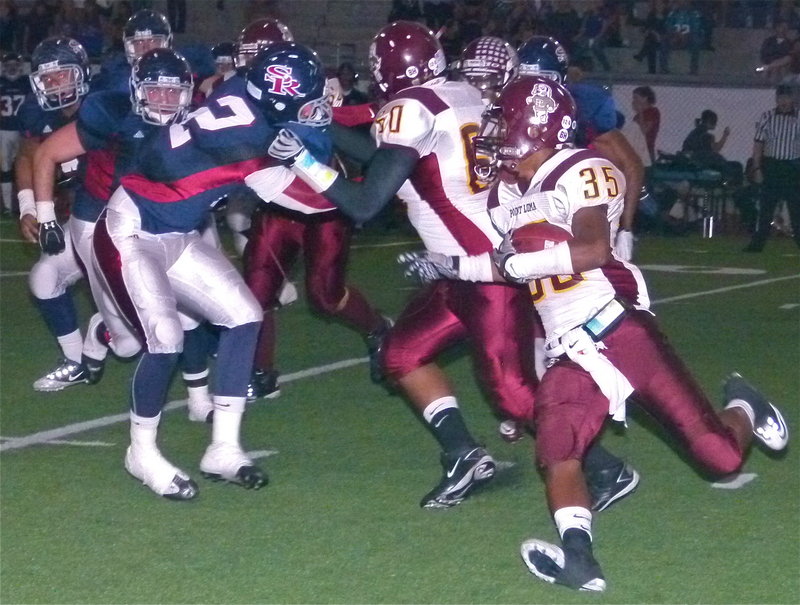 Point Loma’s Pointers rolled up 451 yards of offense in a 31-21 victory over the Scripps Ranch Falcons Sept. 23, plucking a win from the birds at their Grosvenor Stadium roost. Jamal Agnew ignited the Pointers when, on their first possession of the game, he took a handoff around the right side and broke into the clear for a 62-yard touchdown run, giving the visitors a 7-0 lead with 7:41 left to play in the first quarter. Agnew ended the game with 155 yards on only 13 carries, an impressive 11.9 yards per carry average that led the Pointers. Also starting on the defensive side of the ball, Agnew delivered several hits that drew crowd reaction. The team’s usual rushing leader, Jaivon Griffin, was the Pointers’ pass-reception leader in this game, his four catches covering 120 yards. On the next drive, Griffin turned a short swing-pass completion from quarterback Sam Augustine into a 68-yard pickup to the Falcons four-yard line. From here, Morris Mathews scored the first of his game-high three touchdowns with a strong second effort. After being met at the two-yard line by several Scripps Ranch defenders, Mathews kept his legs pumping and broke their grasp for the score. A failed two-point conversion attempt by the Dogs left them with a 13-7 lead. Next, Augustine’s 24-yard completion to Matt Magers gave the Pointers a first down at the Falcons’ 22. It was Mathews again, taking a handoff up the middle before breaking free in the Falcon secondary for the score. A successful two-point conversion gave the Pointers a 21-7 advantage 2:21 before intermission. Scripps Ranch countered with a 35-yard Falcon pass play and a nine-yard run that closed the lead to 21-14. But another long Agnew run, followed by a Falcon personal foul penalty, allowed Felipe Soares to put three more points on the board with a 27-yard field goal with two seconds on the clock before halftime. Each team scored once in the second half. Mathews picked up his third touchdown on a one-yard run with 9:10 left in the game to close scoring. For the night, Mathews carried 11 times for 38 yards. Griffin carried 14 for 30 yards. Other Pointer runners included Sydney Rush (five rushes for 16 yards), Zalyn Bullard (four rushes for 14 yards) and Dirk Lacy (two rushes for three yards). Augustine’s numbers for the night showed eight completions on 18 attempts for 195 yards.