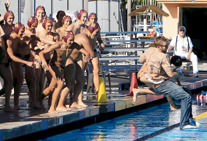 About 12 PLHS student spectators jumped into the pool with their schoolmates when the final horn signaled the end of the title match.