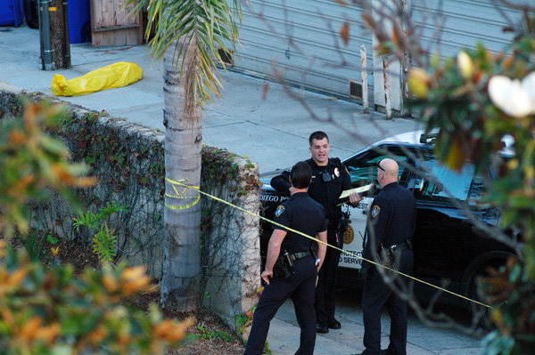An officer-involved shooting in a Pacific Beach alley between Thomas and Grand avenues behind a KFC restaurant left a man dead this afternoon.