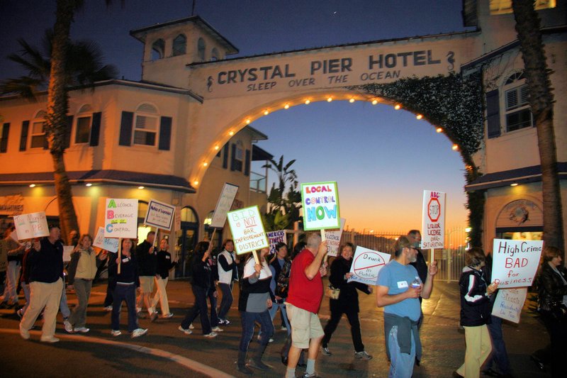 Wielding signs and making a very public statement, roughly 200 activists launched a high-profile rally and walk Jan. 27 to protest alcohol-permitting policies and drunken behavior in the Pacific Beach area — a campaign they hope will capture the attention of city officials like Mayor Jerry Sanders and District 2 City Councilman Kevin Faulconer. The picketers urged city officials to institute more local control over conditional-use permits (CUPs) to establishments that serve alcohol. “ABC [California Department of Alcoholic Beverage Control] is just in the business of granting alcohol licenses, not protecting communities,” said Pacific Beach resident Marcie Beckett. According to protest organizers, CUPs would help minimize the crime and negative impacts and hold city officials accountable. The protesters claimed there are currently 66 alcohol licenses in Pacific Beach where only 10 should be allowed and say the ABC continues to grant more alcohol licenses with conditions. They also said crime and incidents of drunken driving in the business heart of Pacific Beach are more than five times the citywide average and that PB continues to rank as the top community in San Diego for violent crime. Protesters began their walk just south of Crystal Pier, marching five blocks east on the north side of Garnet Avenue, crossing at Fanuel Street and doubling back. They were met with a mix of honking horns, boos and stares as they quietly marched and picketed. “I’m here tonight because I want my business district back,” said Pacific Beach resident Cathie Jolley. “I don’t feel safe to bring my family to Garnet on the weekends. We leave PB to go out to dinner because, on the weekend, Garnet turns into a drunkfest, generating crime and DUIs.” The organizers of the walk and rally said they wanted to make clear they are not anti-drinking or anti-business, but said they believe there must be more local control of alcohol licenses to make Pacific Beach safer for residents, visitors and tourists. At least one representative of the Pacific Beach restaurant and bar community took the Jan. 27 movement in stride. “We believe that there is a fine balance that needs to be achieved and want to do everything we can to achieve that,” said Frank Pisano, a manager for Tavern at the Beach on Garnet Avenue. “We understand what they (marchers) are saying and we believe in responsible service. You can come out, have a few drinks, dance, while at the same time being responsible.”