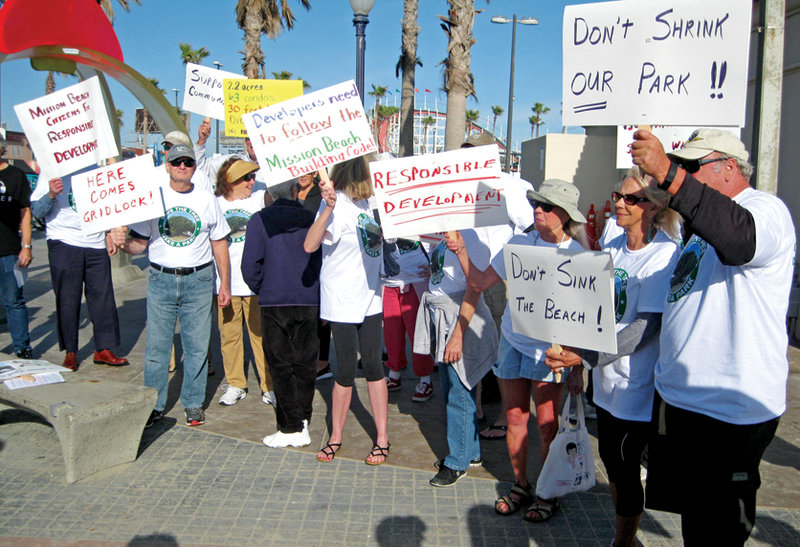 About 25 members of an ad hoc group known as Mission Beach Community for Responsible Development, wearing their “Save the tree” shirts (a ficus proposed to be eliminated), came out to make a statement.