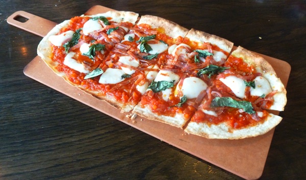 After strolling hungrily past several hardcore Italian restaurants to get here, we were happy that the flatbread of the day involved red sauce made with vivid San Marzano tomatoes and house-made mozzarella. The crust was lusciously thin and the spicy salami on top added traditional spark.