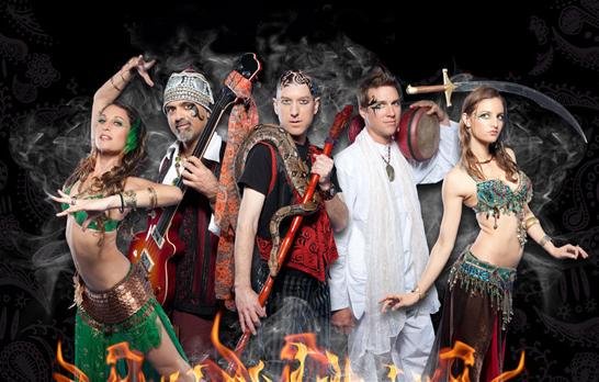 When it comes to the ultimate feast of theatrical sight and musical sound, nothing comes close to Danyavaad and The Shimmy Sisters. Technically described, it’s a mix of Middle Eastern sounds and belly dancers. But in truth, this is closer to a rock extravaganza. Guitar/sitar hero Greg Vaughn, as well as dancers/acrobats Leilania and Ocean Beach native Adelaide Marcus, provide both melody and spectacle and — in the case of the dancers — large snakes. Backed by the rhythm section of percussionist Gabriel Penix and Sandy Bagri, the group this month releases its long-awaited second album, “Nine Levels of Bliss.” “It’s been six and half years since our first album, ‘March of the Gypsies,’” said Vaughn. “It was well worth the effort. We’re really happy with the music. But to give you an idea of how long it took to get this project completed, I had finished some of my basic tracks for this album before the last one was released in 2008,” he said. The album updates the band’s basic sound mix of sitar, bass and drums, with the addition of violin and other musical flourishes. Some parts of the disc border on psychedelia. “One of the biggest differences is that the girls are way more involved than they were on the first album. They do some spoken intros, vocals and even some percussion,” Vaughn said. While the music is rooted in Middle Eastern folk traditions, Vaughn said their sound has broad appeal. “We’ve gone over well at all different types of events, from rock festivals to restaurants,” said Vaughn. “We always do real well. If we’re given the chance.” He considers misconceptions about the group. “People often assume we just sort of sit there and play our music, sort of as a background thing. But that’s not it at all. I’m just as likely to be rolling on the floor with my sitar, like a rock star, if the moment is right. We’ve had promoters come up after a show and tell us that they had been initially afraid to hire us because they didn’t know what sort of show to expect but were really happy with what they said they saw and heard.” Vaughn acknowledges there is an air of circus around their shows, which he considers positive. “The fact that we are so exotic always pulls in big crowds when we perform at big events, even at things like a Renaissance faire,” he said. Vaughn said the troupe puts a lot of work into making its concerts a unique experience. “It’s more than just the music or even the belly dancers,” he said. “There’s costumes and snakes and fire and swords and so on. I might be running around like Eddie van Halen. It’s a show. You put us on at a large event and we will outdraw just about anything, simply because we’re the weirdest thing there.” Although he said he is thrilled with the reactions the group has received for the mix of dance and music, Vaughn considers the occasional comedic mishap during performance to be among his favorite moments. “We work with really good-natured snakes. They’re just great,” Vaughn said. “But sometimes they get a little rambunctious and begin to wander a bit. On the dancers, it’s not so bad. The dancers can readjust the snakes as needed. However, when they occasionally put the snakes on me, there can be humorous situations. I’ve had a snake wrap itself around my sitar neck while I tried to play. For the band, as well as the audience, as you can imagine, it was high comedy. I’m going to take a guess and say that’s probably a hazard not a lot of other players have had to deal with.”