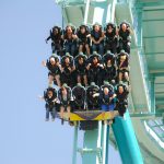 The Emperor dive coaster is a Swiss-manufactured attraction from Bolliger and Mabillard, known for designing smooth rides. It is the only six-across seated dive machine in the U.S. as each of the floorless ride cars holds 18 riders in three, six-person rows.