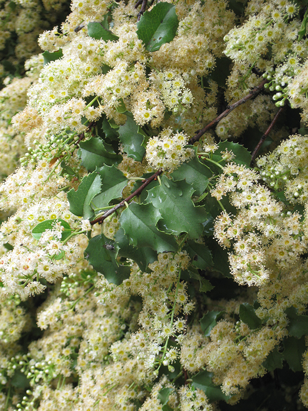 For a show-stopping spring bloom, check out Holly-leaf Cherry (Prunus ilicifolia). Towering to 30 feet high and wide, its profuse blooms can all but mask its winter holiday-shaped serrated leaves. Look for it in moist areas of our chaparral, amid north-facing slopes.