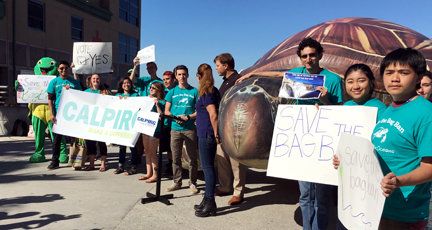 Motivated by a love for the environment and a commitment to protecting the ocean and marine wildlife, 20 students from CALPIRG, the California Student Public Interest Research Group chapters stretching from UC Berkeley to UC San Diego travelled the state during an alternative spring break cleaning up beaches and rivers, and encouraging voters to vote yes in November to Save the Bag Ban.
