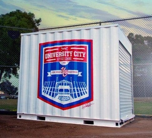 Thanks to graphic artist David Roost, things are that much brighter in University City’s Standley Park these days. Roost, who grew up in UC, painted this fancy design on the park’s Fort Field Little League shed in a project underwritten by the University City Community Association. Roost also took the photo.