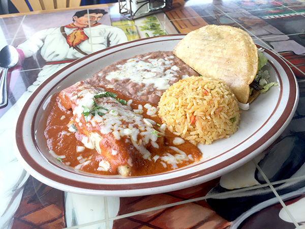 Missing from most of the dishes I tried were perceptible doses of chilies, cumin, oregano, garlic, cilantro and onions — critical players in Mexican cuisine, no matter how Americanized. Only a beef-filled tamal that came on a combo plate carried hints of chilies and spices, similar to the flavors you’d taste in barbacoa-style meat, which the menu also features. In the tamal, the red-tinted beef struck an appealing contrast to the moist, cakey masa encasing it.