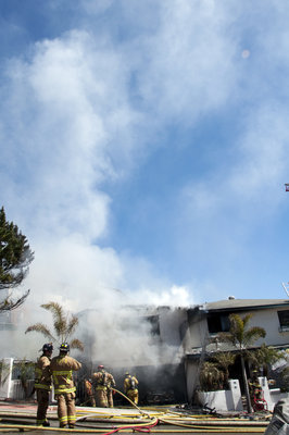 Firefighters successfully knocked out a large house fire that erupted near Mount Soledad around 2 p.m. on Thursday, March 31. But officials said although most of the home was saved, owners still suffered about $4.5 million in damages. A man was working on a classic car in the garage of his two-story home at 1195 Van Nuys, when wandering gasoline vapors flowed over to a gas-fueled water heater. The pilot light of the heater, which was not properly elevated off the floor, ignited the vapors — starting a blaze that took over both the garage and upstairs bedroom, officials said. Building-code specifications require such heaters to be elevated off the floor. The man was able to escape without injury, and witnesses said he evacuated the house with a dog, who was also unharmed. Some children nearby said they heard the explosion. Dozens lined up outside the home to observe the incident. The fire began migrating throughout the home quickly, but San Diego firefighters were able to extinguish it within about 15 minutes, officials said. The fire, which officials have deemed an accident, caused an estimated $3 million in structural damages and $1.4 million in damages to contents. The entire home was affected by smoke damage.