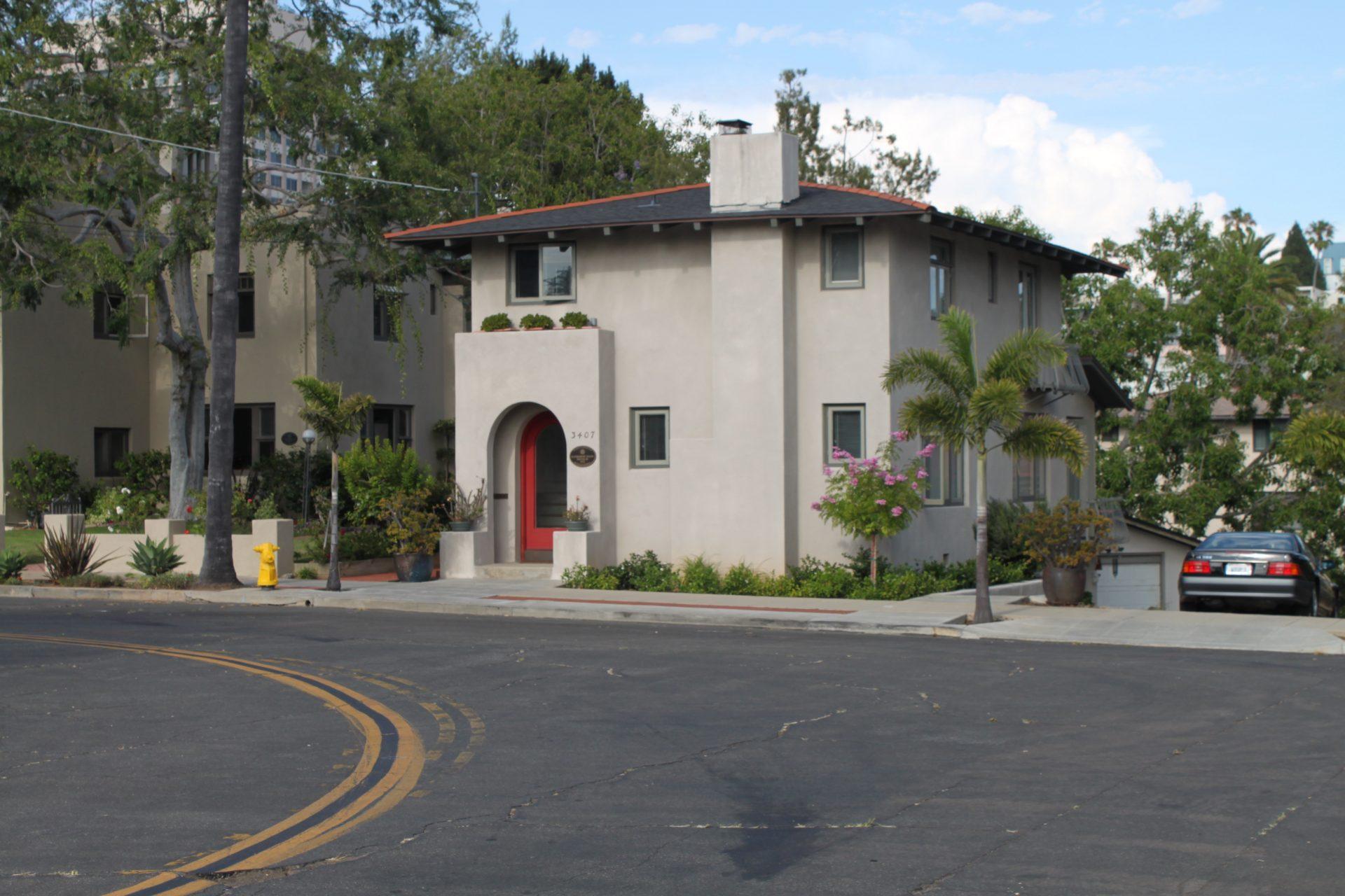 Gill’s favorite was Bella Vista Terrace (Lewis Courts), a bungalow court in Sierra Madre, which was arranged in the early California manner, with the units pushed up against the street, leaving room for a communal garden, picnic area and pergola. (The owner, of course, filled in the open space with more units, to increase his profit.)