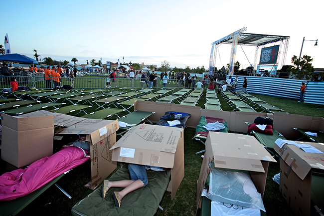 The 2014 Sleepless San Diego program officially kicks off at 4:30 p.m. Saturday, Oct. 11, with an assortment of musical acts and educational videos. At 11 p.m., participants will be asked to unroll their sleeping bags and find a spot within a cordoned off area at Liberty Station.